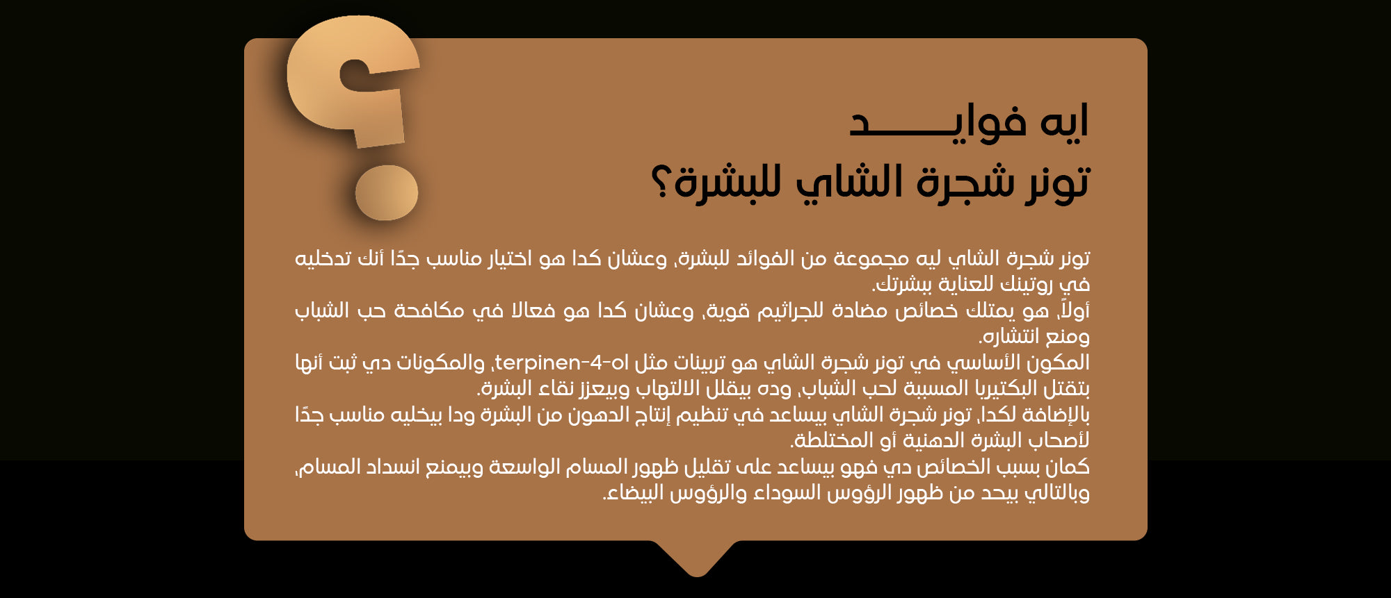 - Terpinen-4-ol: مركب معروف بأنه مضاد للميكروبات، وبالتالي بيطهر البشرة وبيحميها من الميكروبات اللي بتسبب الحبوب.