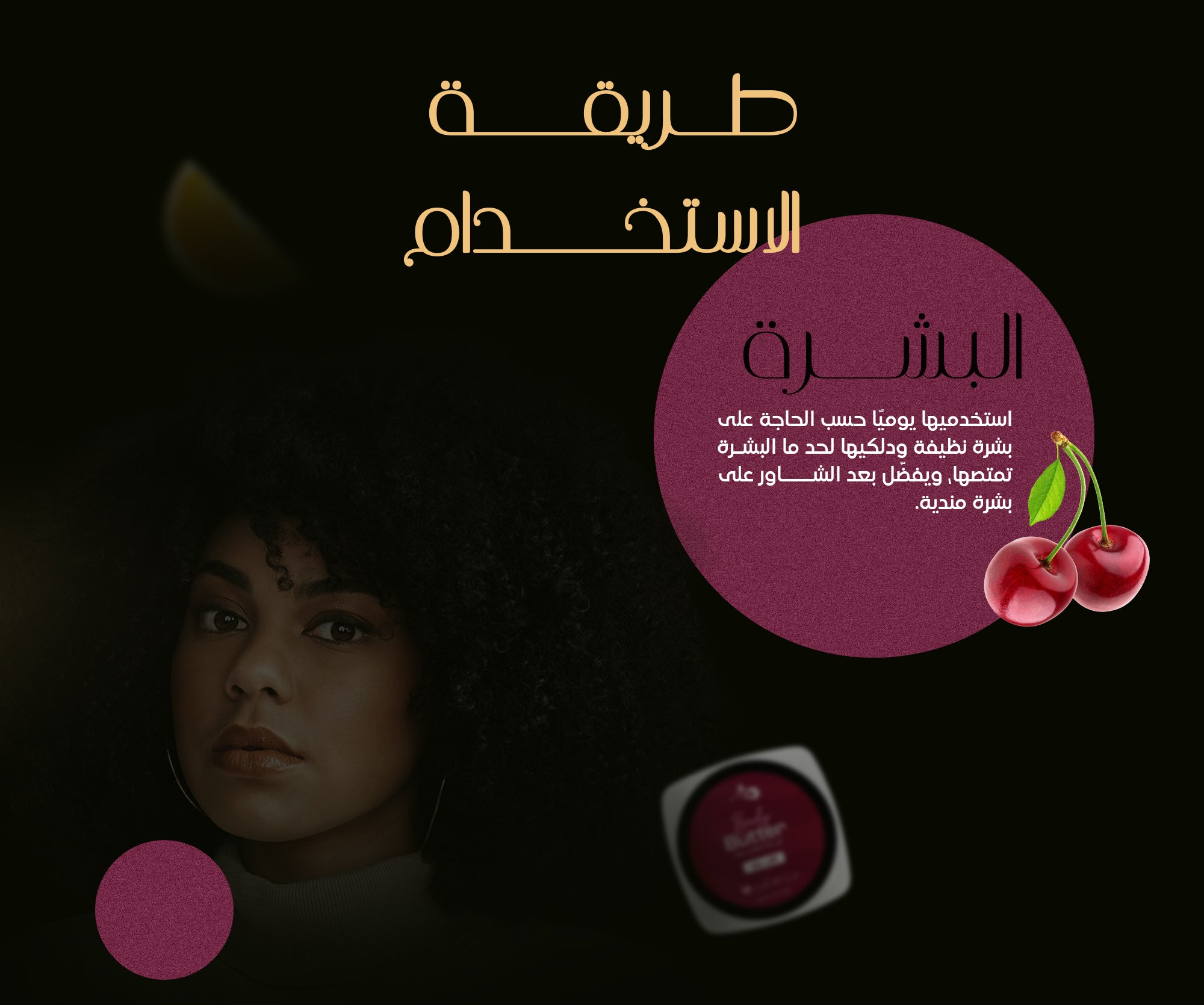 المكونات: زبدة الشيا - الجلسرين المرطب - مجموعة من الزبدات المُرطبة والمُغذية للبشرة.