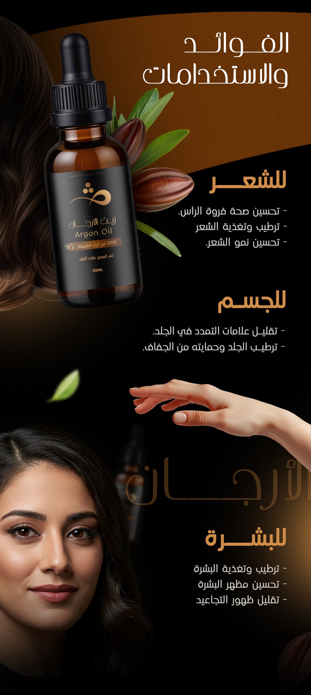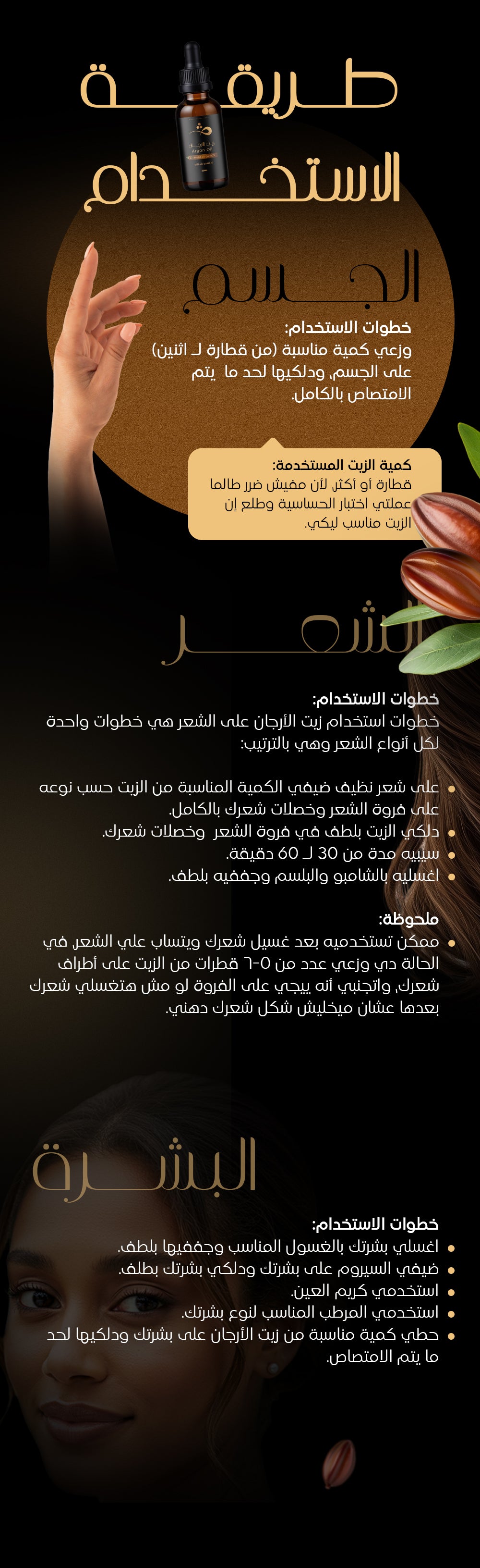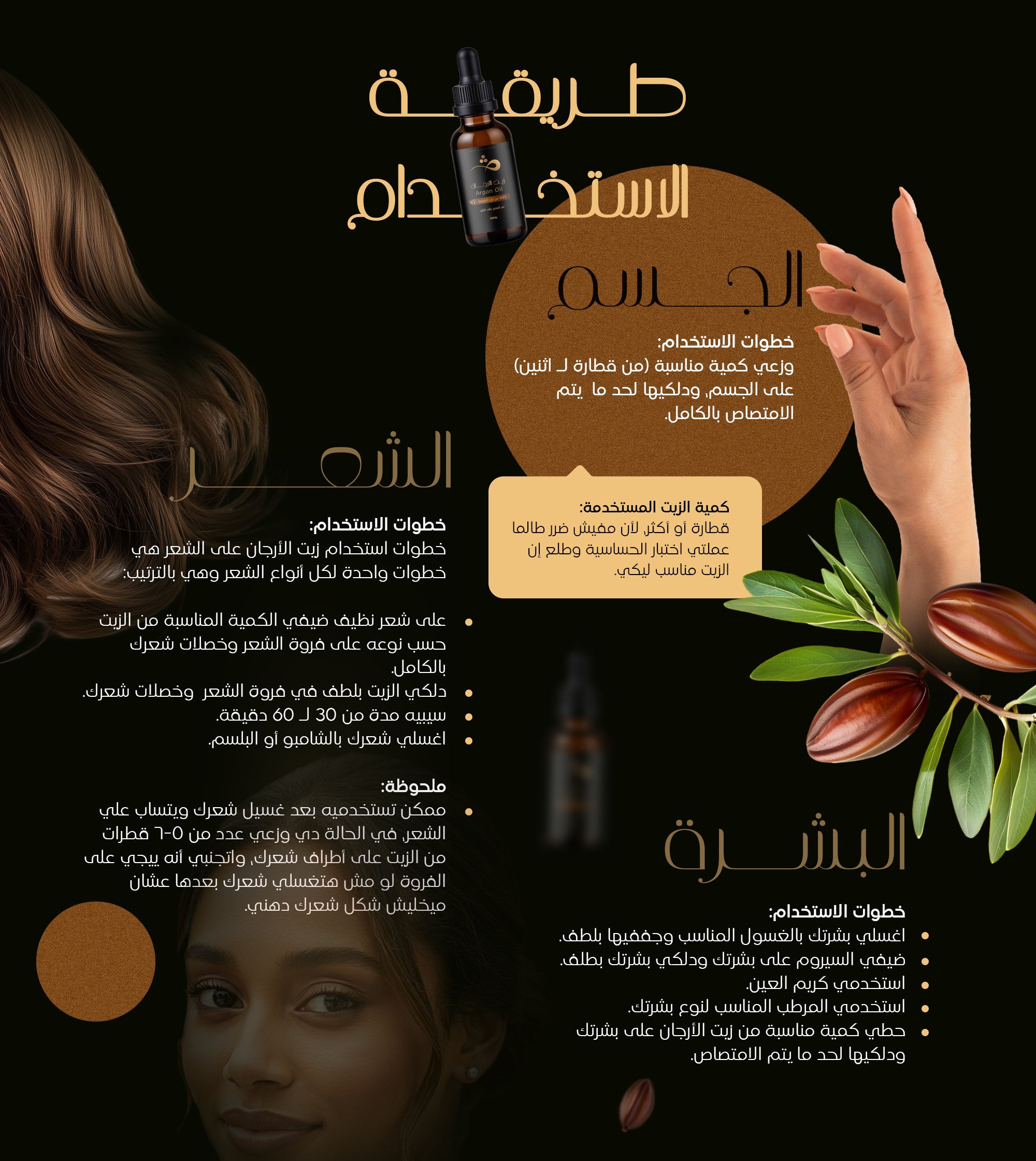 زيت الأرجان بيتكون من أحماض دهنية وفيتامينات ومركبات نباتية مفيدة جدا للشعر والبشرة: