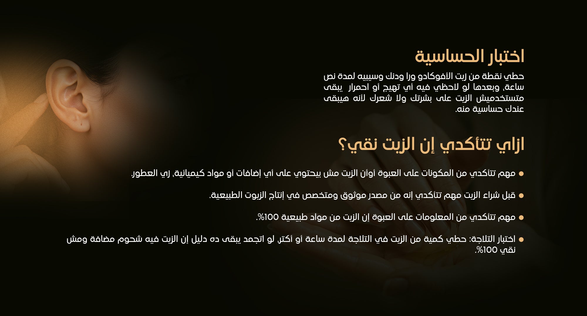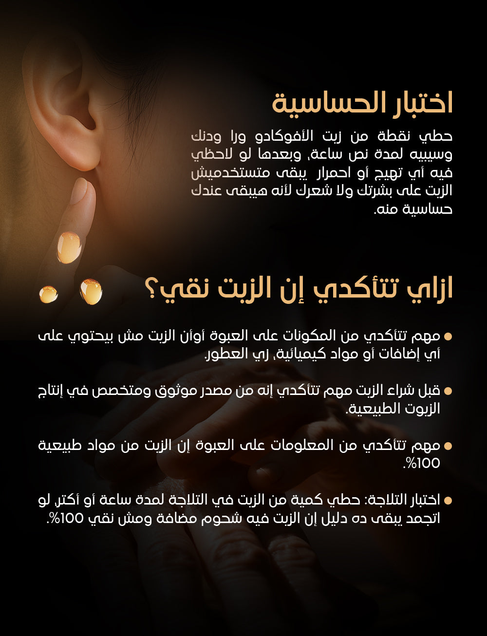 خلاصة زيت الأفوكادو النقي بدون أي إضافات.