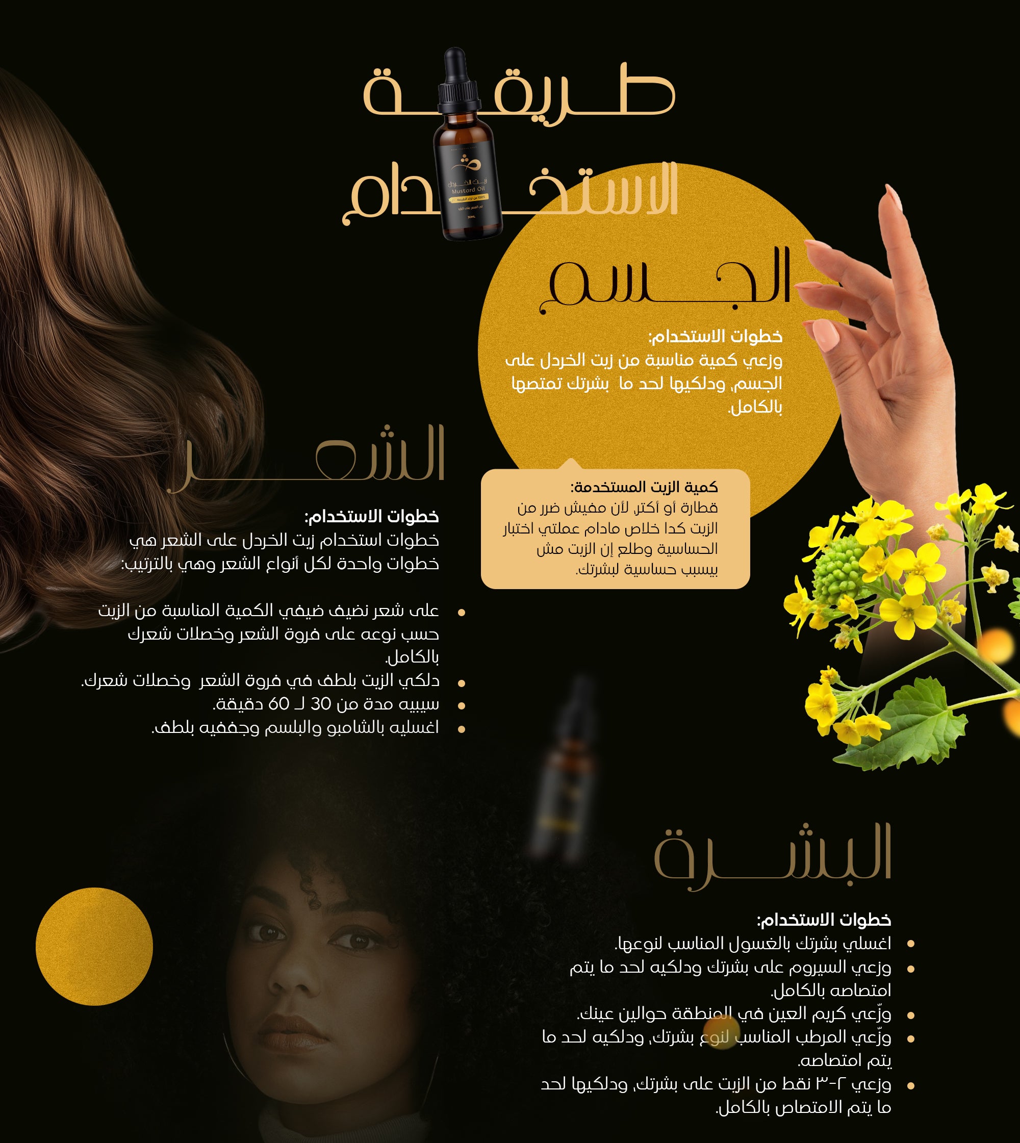 زيت الخردل بيحتوي علي مجموعة من الأحماض الدهنية والفيتامينات المفيدة للشعر والبشرة ومن أهمها: