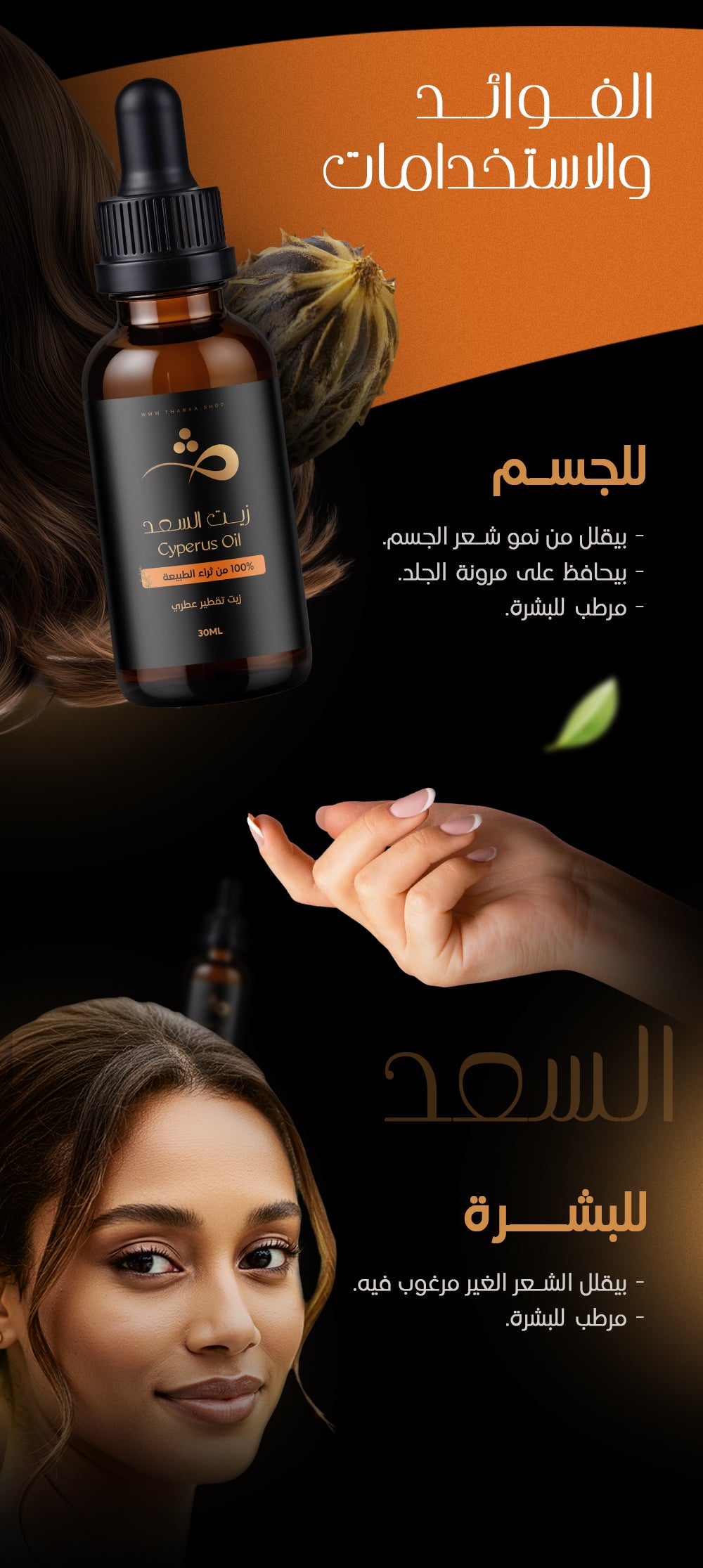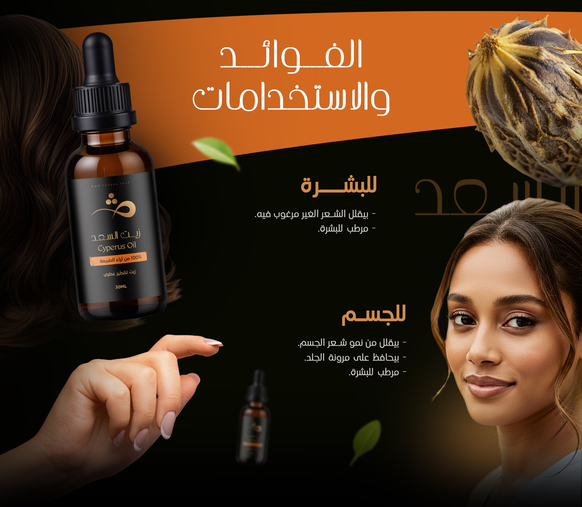 من أهم فوايد زيت السعد تقليل الشعر الزائد في بشرة الجسم، ودا موجود في بعض الدراسات اللي اتعملت على الزيت.