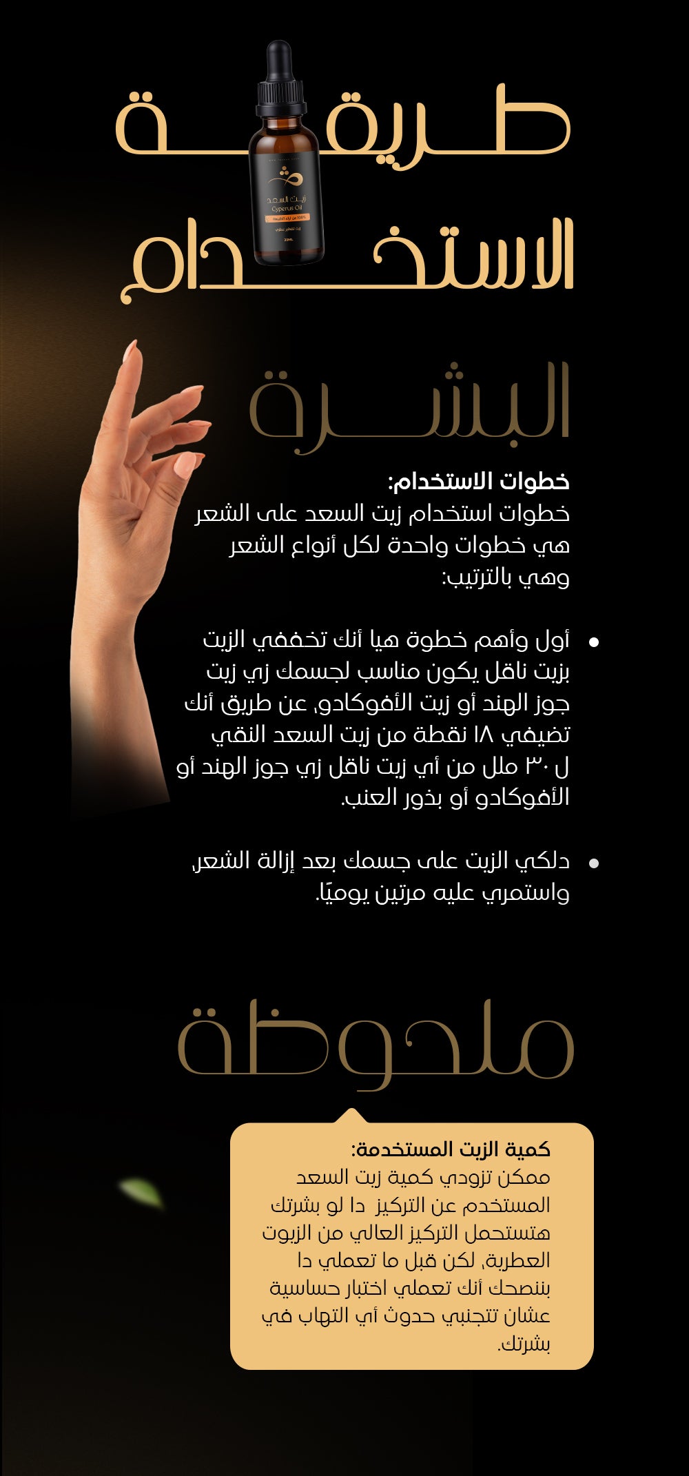 المكونات: زيت السعد العطري النقي من غير أي إضافات.