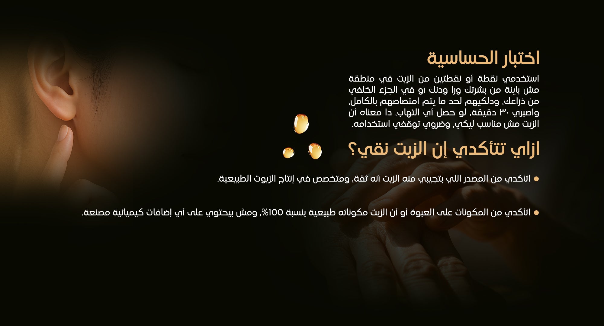 أي زيت أو علاج للشعر بيحتاج مدة مش أقل من ٣ لـ ٦ شهور من الاستخدام المنتظم لأن دورة حياة الشعراية مش بتكون أقل من كدا، عشان كدا بننصحك أنك متستعجليش النتيجة وتستمري في استخدام الزيوت لشعرك لأن أهم حاجة في علاج شعرك بالمواد الطبيعية هو الانتظام والاستمرار عليها لفترات طويلة.