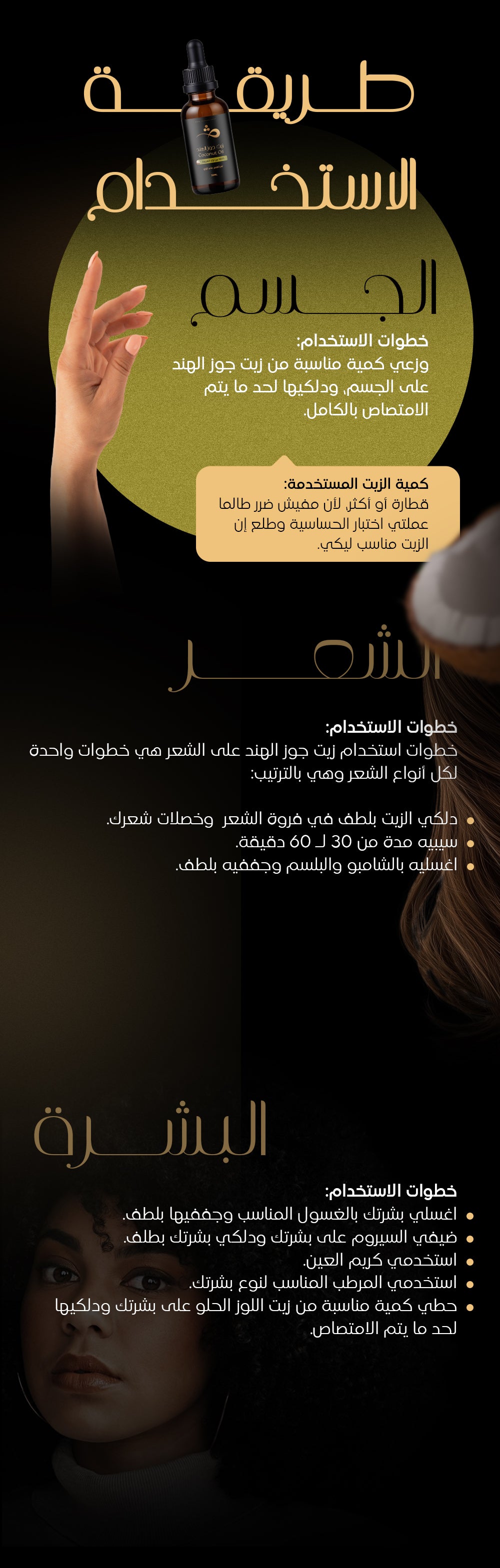 طريقة الاستخدام للتركيبة دي هتكون نفس طريقة استخدام الزيت على بشرة الجسم.
