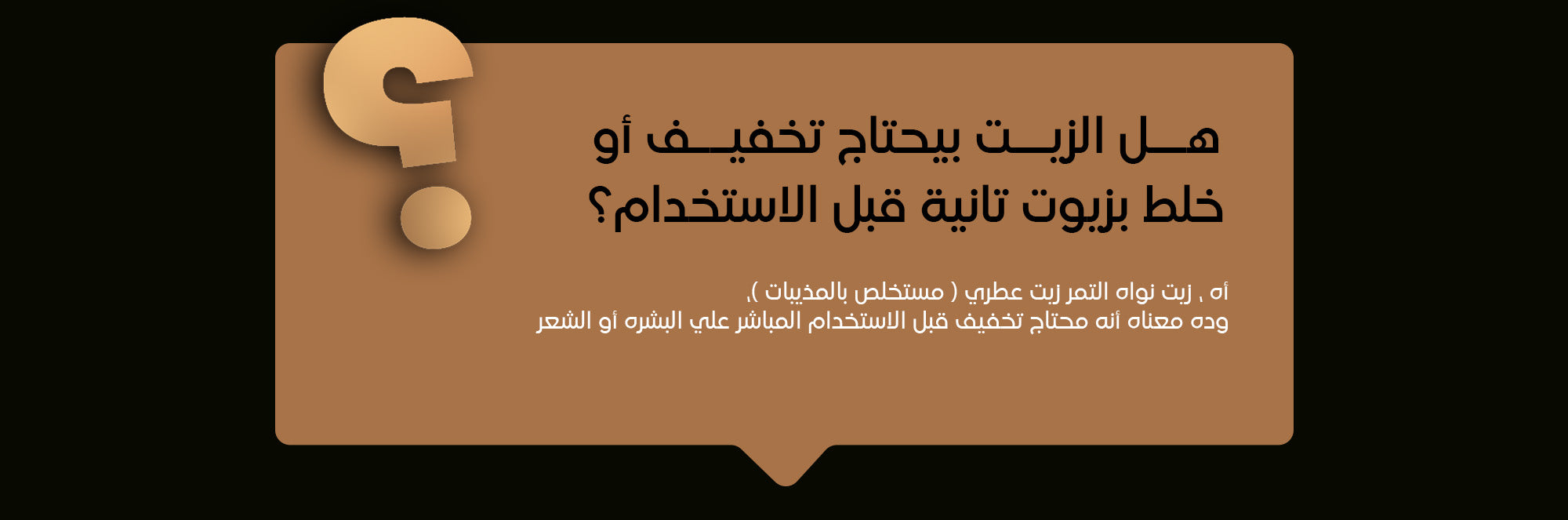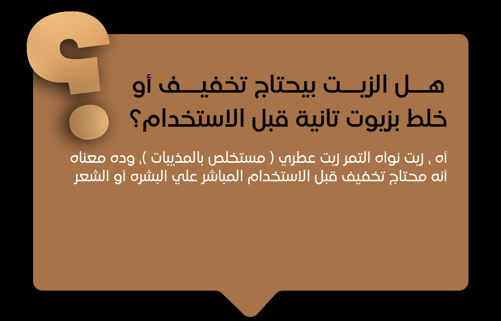 المكونات: زيت نواة التمر النقي من غير أي إضافات.