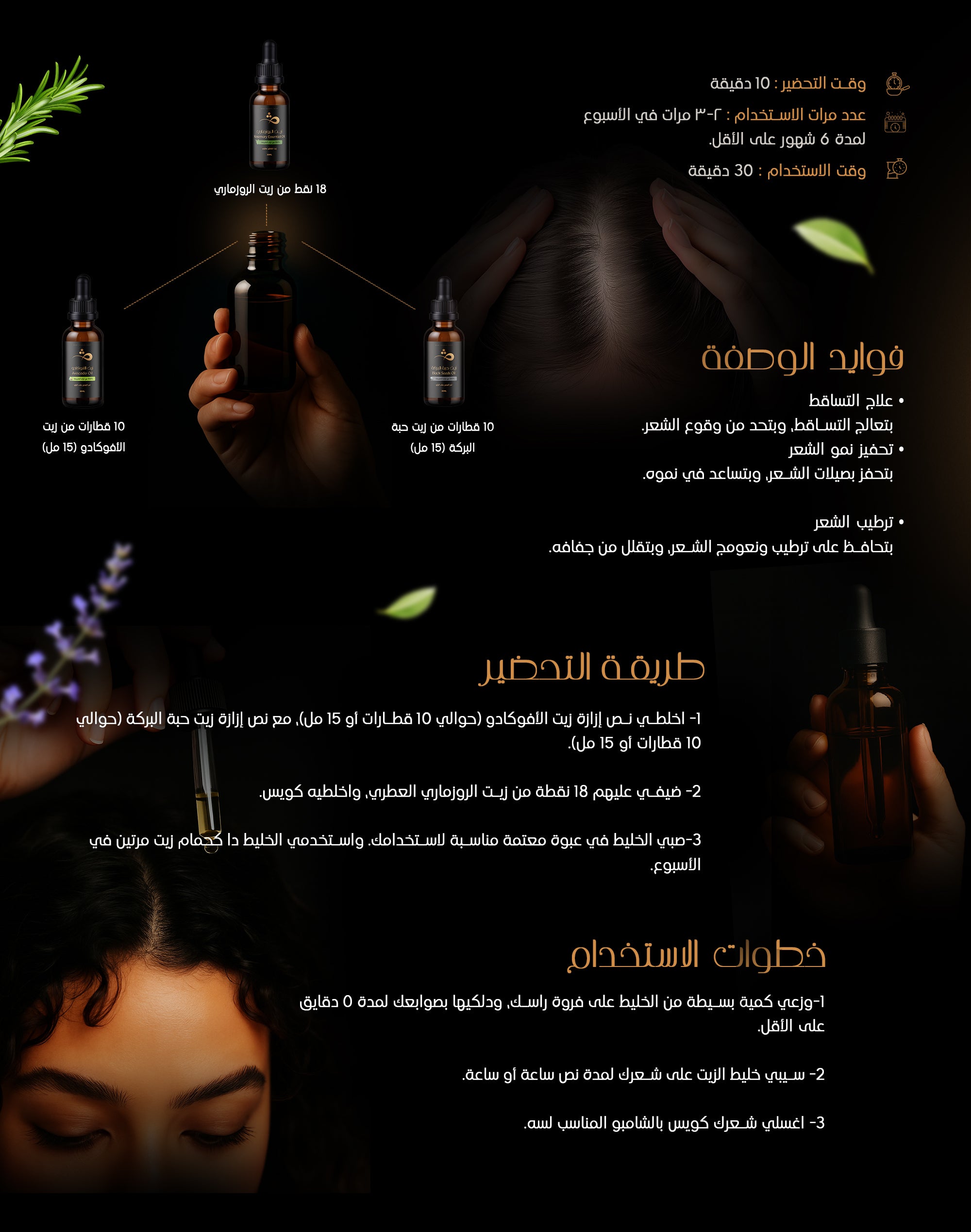 كل العناصر دي بتساعد على إغلاق المسافات بين خلايا بشرة الشعر وبتمنع تقصف وتكسر الشعر.