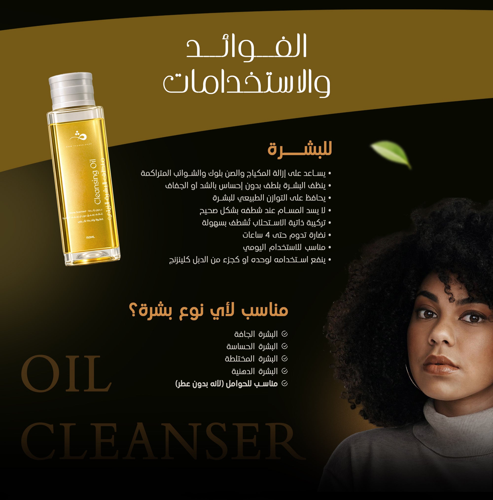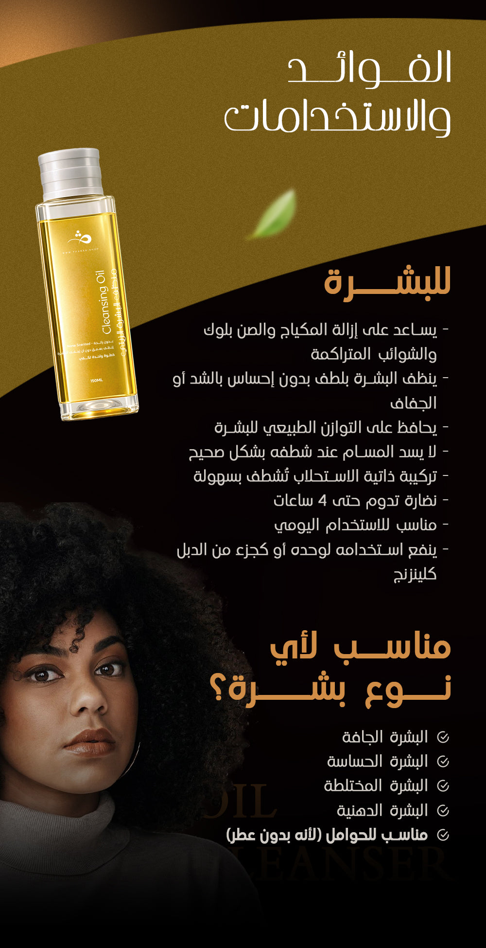 بيساعد على إذابة المكياج والشوائب والدهون الزيادة بدون ما يجرّد البشرة من ترطيبها الطبيعي.
